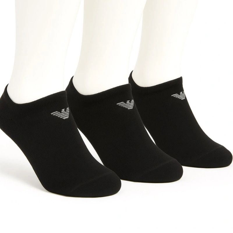 Emporio Armani Calza Knöchelsocken aus Baumwolle, schwarz, bequem, 3er-Pack
