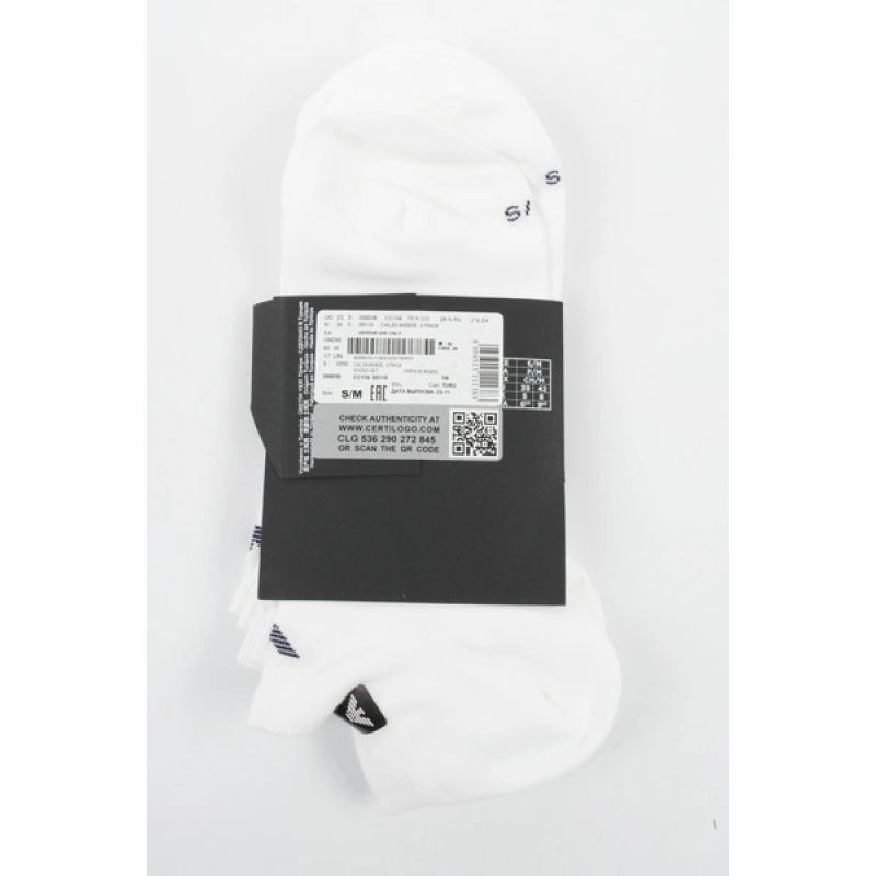 Emporio Armani Calza Knöchelsocken aus Baumwolle, weiß, bequem, 3er-Pack
