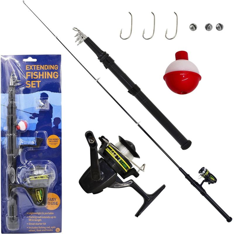 - Das Set beinhaltet: Angelrute mit Rolle, 3 Haken, 1 Pose, 3 Gewichte