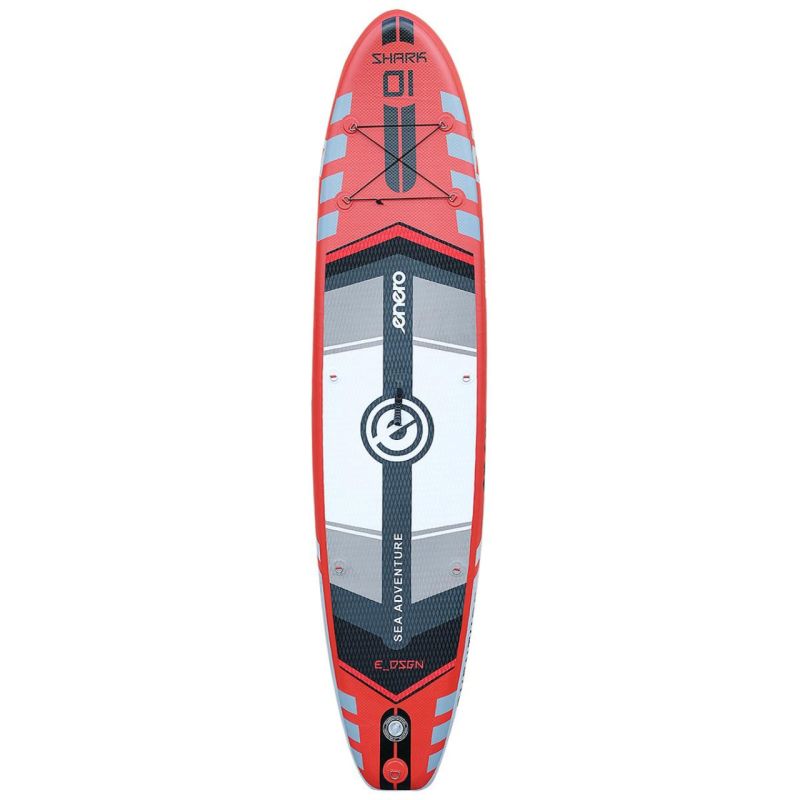 Enero Inflatable SUP Board 320x76x15 cm 1054025 Das aufblasbare SUP-Board ist eine bewährte Wahl für Familien- oder Einzelausflüge, sowohl für Anfänger als auch für Fortgeschrittene. Grundlegende Eigenschaften: · Richtig konstruierte Krümmung unterstützt Steifigkeit und Stabilität auf dem Wasser · Drei Finnen halten auch sehr starken Belastungen beim Paddeln stand · Hergestellt aus verstärktem Material mit Drop-Stitch-Technologie, wodurch das Board im mit Luft gefüllten Zustand extrem steif wird · Konzipiert für jeden Wassersportler bis zu einem Maximalgewicht von 145 kg · Einfaches Aufblasen und Entleeren dank spezieller Hochdruckventile · Ausgestattet mit speziellen Griffen zum Anbringen eines Stuhls und starken Gummibändern zum Verstauen von z. B. ein Rucksack · Moderne Farben folgen den aktuellen Trends im Wassersport · Im Preis des Boards sind ein Rucksack zum Tragen des Boards, eine Aufblaspumpe, ein Reparaturset und ein leichtes Paddel enthalten. Technische Daten: · Boardmaße ca.: 320 x 76 x 15 cm (L x B x H) · Maximales Benutzergewicht: 145 kg · Verdrängung: 290 L · Anzahl Finnen: 2 kleine Seitenfinnen + 1 zur Selbstmontage PA6 · Finnentyp: Standard · Finnenanordnung: 1 mittig + 2 seitlich · Material: PVC-Board laminiert 2500g/m2, rutschfeste Oberfläche EVA-Schaum, Ruder Aluminium, Nylon, Rudergriff TPR, Finnen PA6, Rucksack Polyester · Finnenlänge verstellbar · 3-teiliges Ruder mit Durchm. 3 cm ca.: 165 - 208 cm · Maße Griff zum Tragen des Boards: 15 cm - Griff 12 cm · Maße Rucksack zum Transport des Boards: 88 x 30 x 24 cm (H x B x T) · Max. Luftdruck: 1 bar (15 psi) · Anzahl Luftkammern: 1 · Verpackung (Karton): 87 x 26 x 42 cm (H x T x B) · Verpackungsinhalt: · Board · Aluminiumpaddel (3-teilig gefaltet mit Schnappverschluss) · Abnehmbare Finne · Hochdruckhandpumpe mit Manometer · Reparaturset in einer Tube: Kleber und 1 3-Lagen-Flicken · Rucksack zum Transport des Boards
