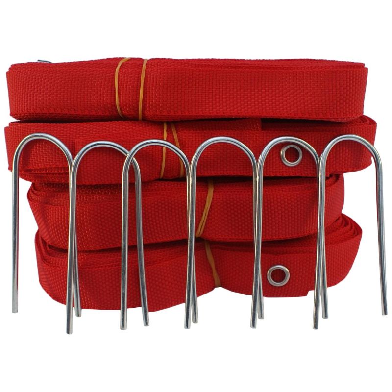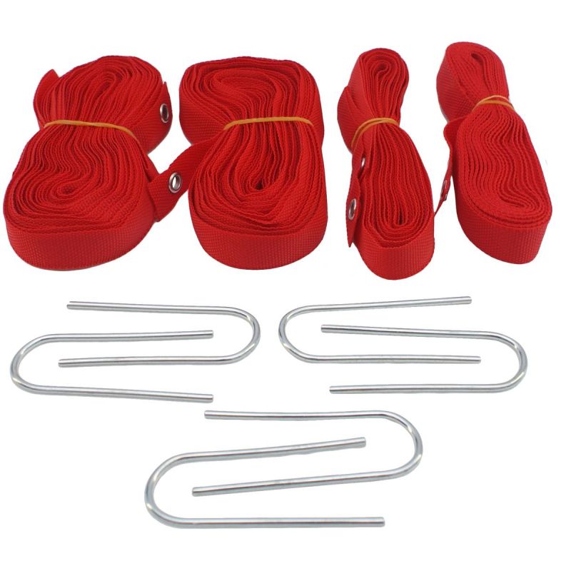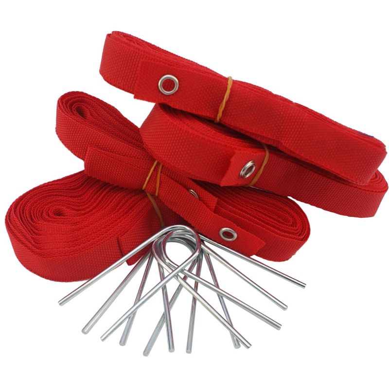 - Das Set beinhaltet: 2 x Bänder, ca. 6,1 m lang, 2 x Bänder, ca. 13,5 m lang, 6 x Heringe