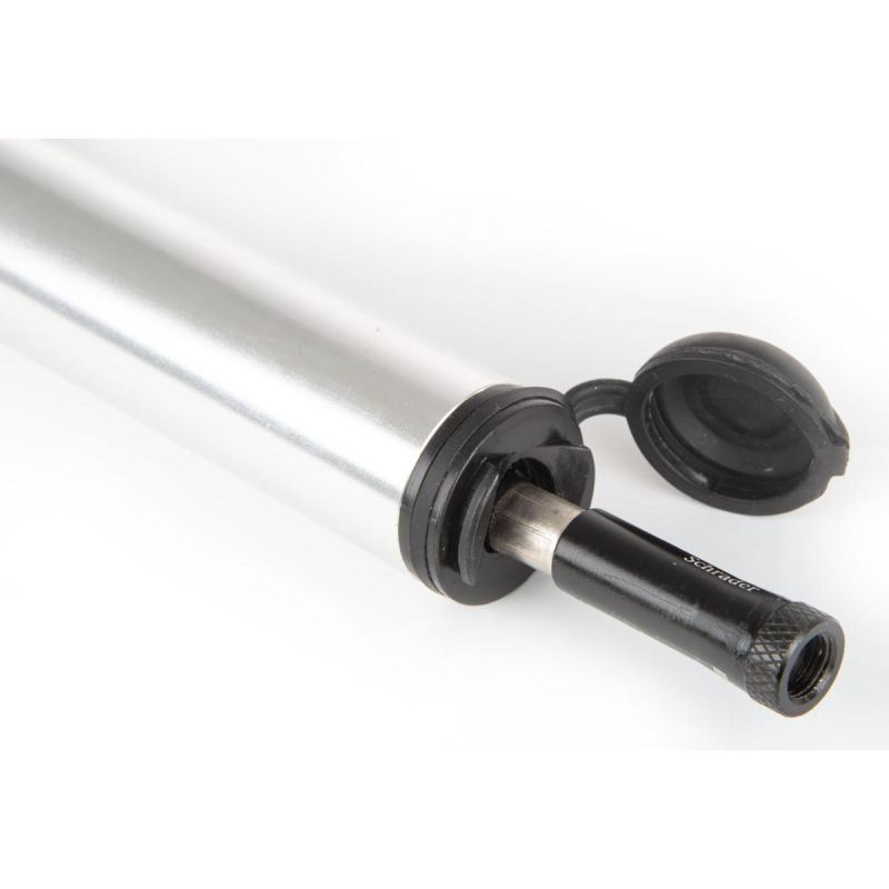 Dank des Teleskopdesigns ist die Pumpe besonders kompakt und leicht. Der Schlauch ist im Gehäuse integriert. Eine Gummikappe schützt vor Feuchtigkeit und Schmutz. Zum Lieferumfang gehören eine Fahrradhalterung und Schrauben. Die Pumpe lässt sich problemlos im Wanderrucksack transportieren, ohne dass man ihr Gewicht spürt.