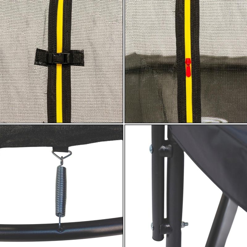 Ausgestattet mit speziellen, dicken Federabdeckungen, schützt es diese vor äußeren Einflüssen und verhindert, dass Ihre Füße beim Auf- oder Absteigen mit ihnen in Berührung kommen. Die spezielle Form der das Netz stützenden Pfosten schützt die Benutzer zudem optimal davor, dagegen zu stoßen.