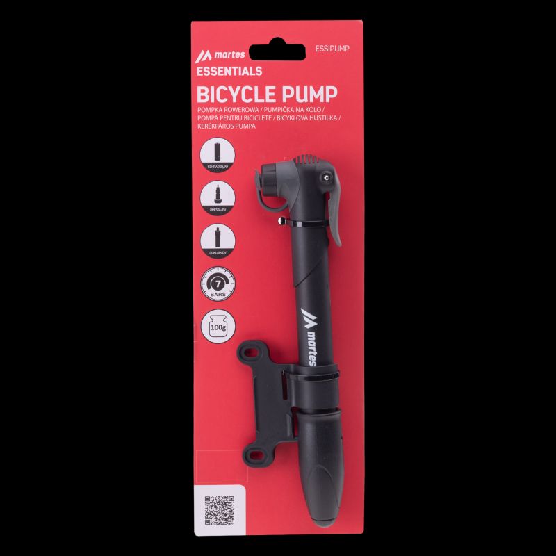 FAHRRADPUMPE GRÖSSE (ZUSAMMENGEKLAPPT): 225 x 21 mm GEWICHT: 100 g MATERIALZUSAMMENSETZUNG: KUNSTSTOFF, STAHL SPEZIFIKATION: - BIS ZU 7 BAR - AN ALLE VENTILTYPEN ANSCHLIESSEN (PRESTA, DUNLOP)
