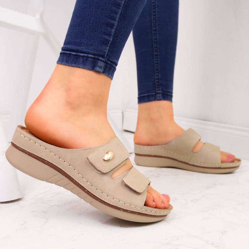 eVento W EVE224B beige Keilsandalen mit Klettverschluss