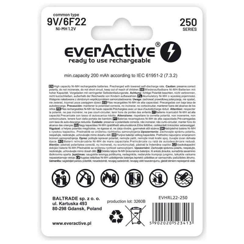 2. everActive EVHRL22-250 Akku (250 mAh; Ni-MH)