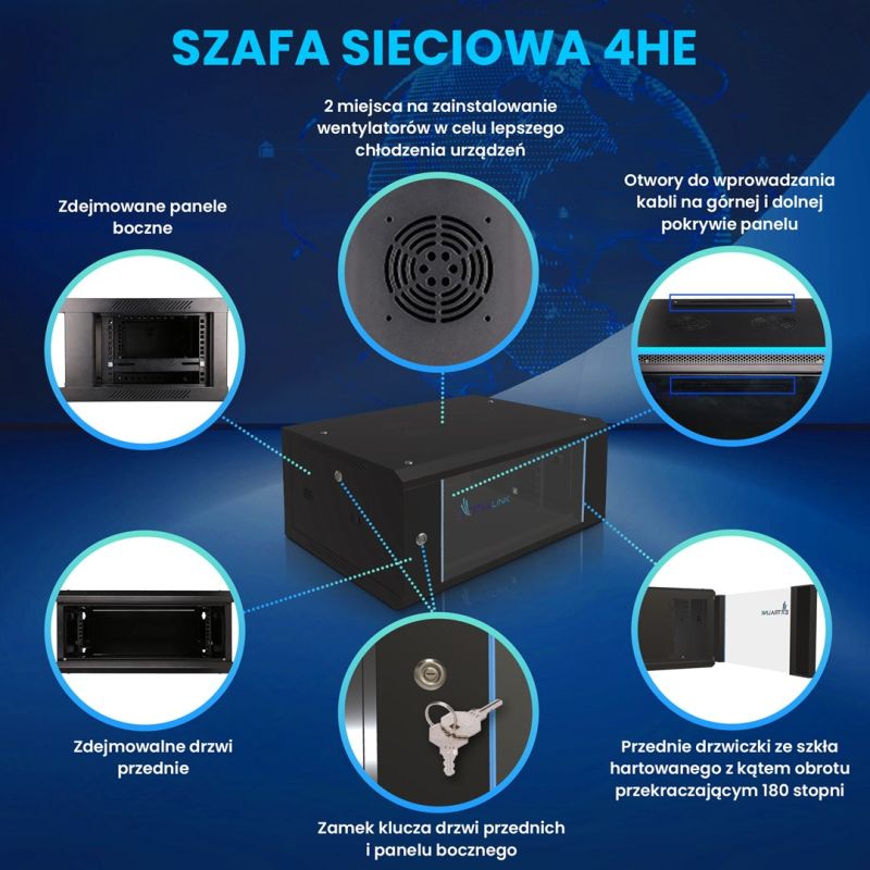11. Extralink 4U 600x450 Schwarzer Wand-Rackschrank