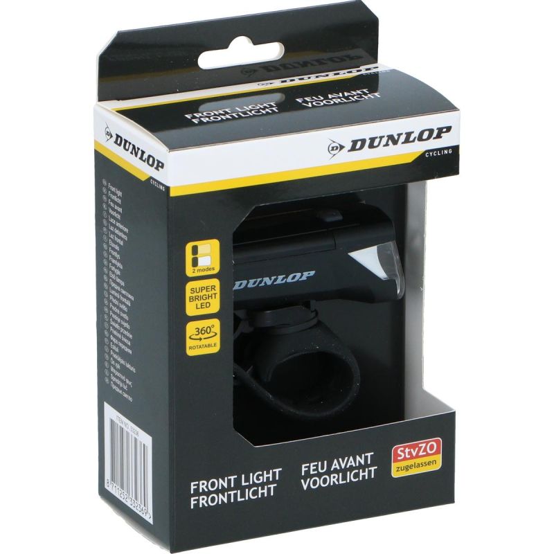 Sie möchten auch nach Einbruch der Dunkelheit sicher fahren und bei allen Bedingungen gut sichtbar sein? Die CE-zertifizierte LED-Frontleuchte von Dunlop mit zwei Leuchtmodi und 360°-Drehfunktion bietet hervorragende Sichtbarkeit, Spritzwasserschutz (IPX4) und hohen Bedienkomfort dank einer Batteriestandsanzeige.