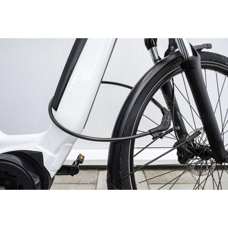 Das Schloss ist insgesamt 180 cm lang und lässt sich daher problemlos an festen Strukturen wie Geländern oder Fahrradständern befestigen. Der Kabeldurchmesser beträgt 10 mm und bietet somit einen hervorragenden Diebstahlschutz.