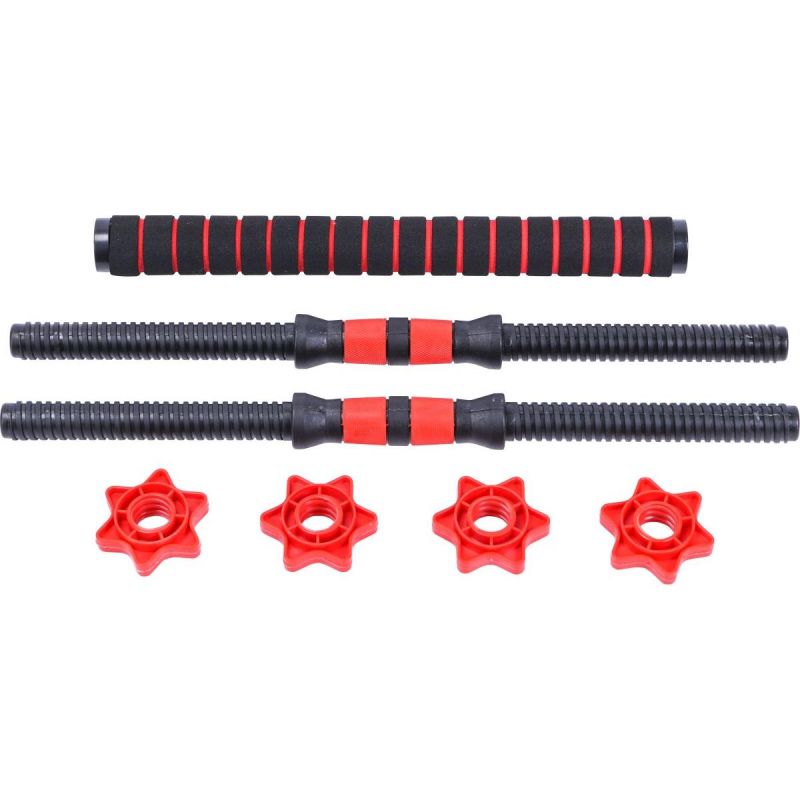 - Setzusammensetzung: 16 Gewichte mit einem Gewicht von je 2,5 kg, zwei Verbindungsstücke (56 cm und 40 cm), zwei Kurzhantelstangen (50,5 cm), Klemmen (Muttern) - 4 Stück.