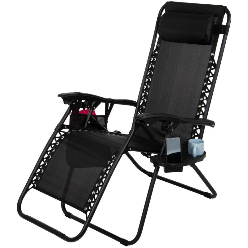 Die weiche Kopfstütze ermöglicht bequemes Anlehnen und eine komfortable Liegeposition. In der Seitentasche haben Sie Ihre Zeitung oder Ihr Lieblingsbuch immer griffbereit, und auf dem kleinen Tisch können Sie eine Tasse Kaffee, Saft oder Ihr Handy abstellen. Das Gestell des Stuhls besteht aus robustem und langlebigem Stahlrohr und trägt bis zu 120 kg!