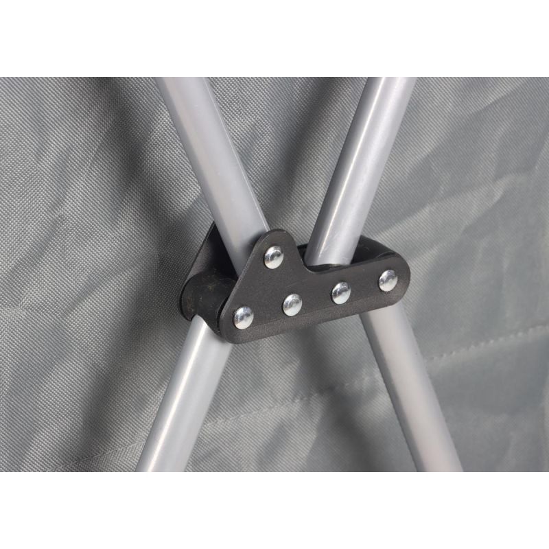 Dank der faltbaren Stahlkonstruktion lässt es sich schnell und ohne Werkzeug auf- und abbauen, was auf Reisen sehr praktisch ist.