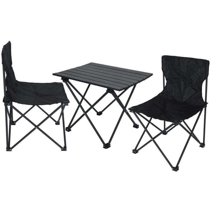 Faltbares Touristen-Set 3-in-1 Tisch und 2 Stühle Schwarz Enero Camp