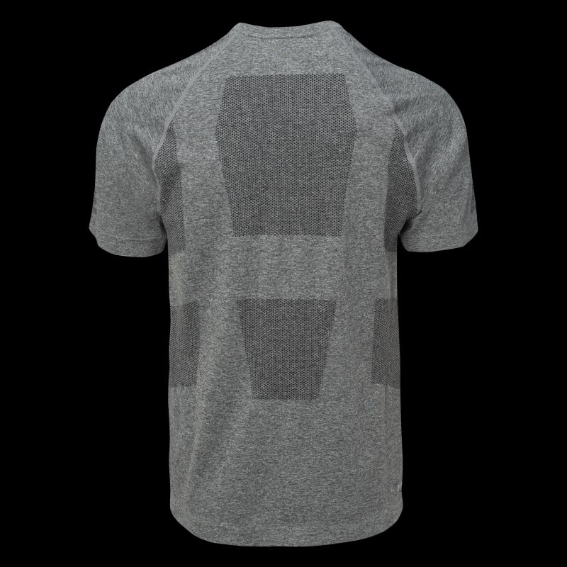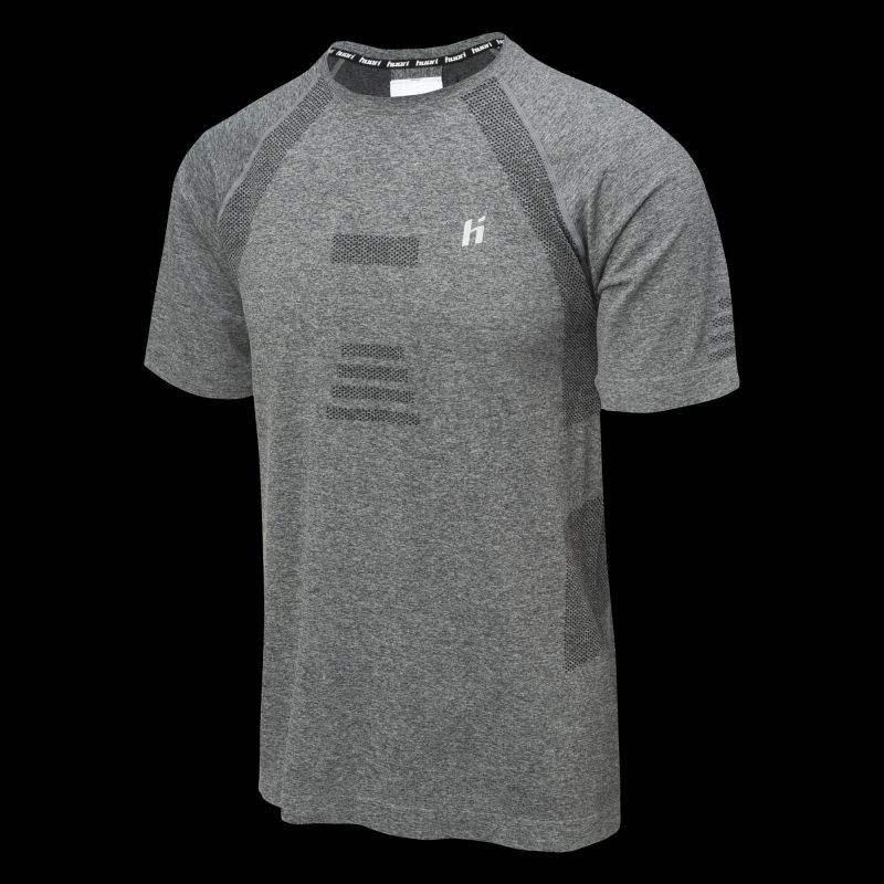 Trainingsshirt, Größen: S-XL, Materialzusammensetzung: 65 % Nylon, 35 % Polyester, Eigenschaften: Atmungsaktiv, Schnelltrocknend, Nahtlos, Reflektierende Elemente, Elastisches 4-Wege-Stretchmaterial