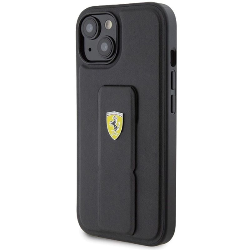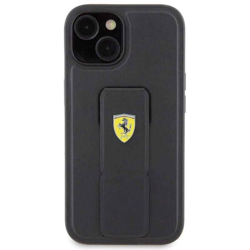 Ferrari Grip Stand Metall-Logo-Hülle für iPhone 15 – Schwarz