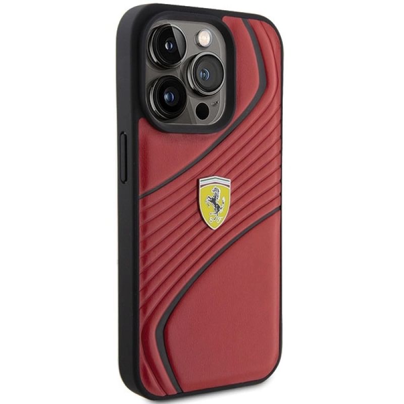 Ferrari Twist Metal Logo Hülle für iPhone 15 Pro – Rot