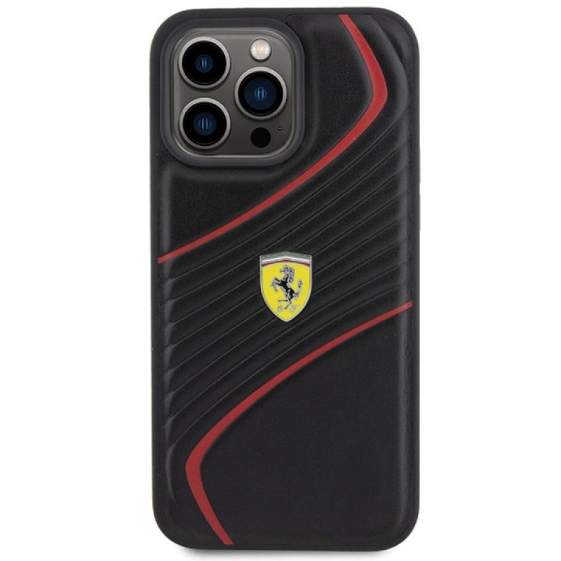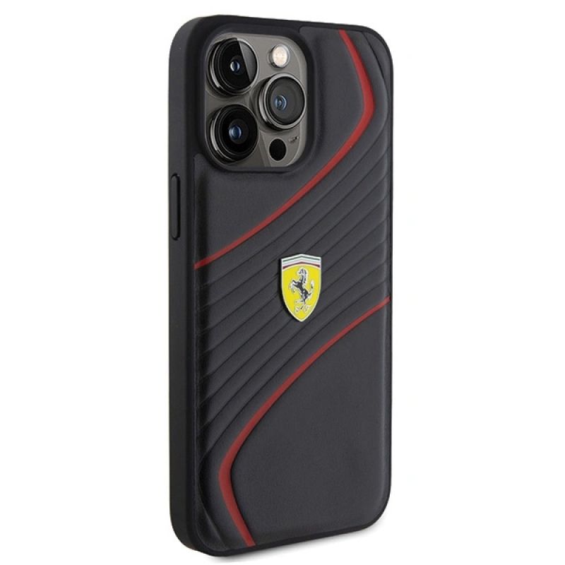 Ferrari Twist Metall-Logo-Hülle für iPhone 15 Pro Max – Schwarz