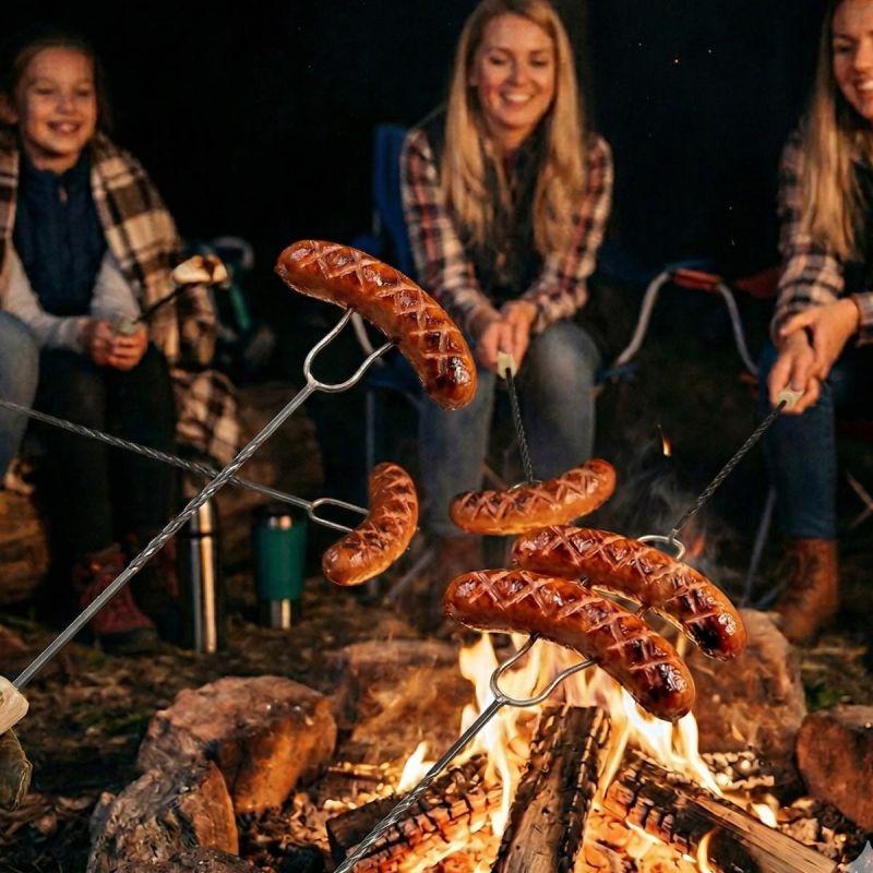 Die Lagerfeuergabel besteht aus einem Stahlstab, der lang genug ist, um einen sicheren Abstand zum Feuer zu gewährleisten. Der Holzgriff schützt vor Verbrennungen und sorgt für mehr Komfort. Die Gabel hat scharfe, zweizinkige Spitzen, die sich perfekt zum Aufspießen von Würstchen und Gemüse eignen. Wir bieten auch weiteres Grillzubehör an.