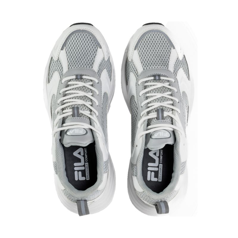 Fila Kreatix Herrenschuhe Weiß und Grau FFM0462 13096. Fila Herrenschuhe eignen sich perfekt für Alltag und Sport. Das Obermaterial kombiniert Synthetik mit einem netzartigen Textilmaterial. Klassische Schnürung. Zuglasche an der Ferse. Leicht erhöhte Laufsohle mit griffigem Profil. Markenlogo an mehreren Stellen.