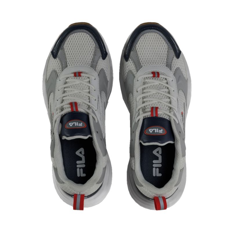 Fila Kreatix Herrenschuhe Weiß und Marineblau FFM0462 13041. Fila Herrenschuhe eignen sich perfekt für Alltag und Sport. Das Obermaterial kombiniert Synthetik mit einem netzartigen Textilmaterial. Klassische Schnürung. Zuglasche an der Ferse. Leicht erhöhte Laufsohle mit griffigem Profil. Markenlogo an mehreren Stellen.