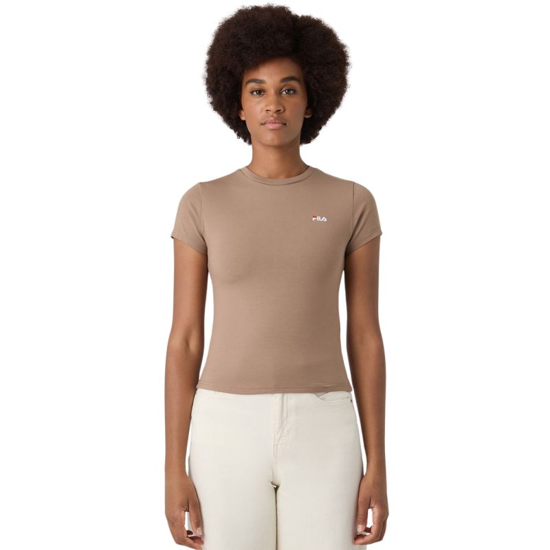 Fila Trivero Damen T-Shirt Beige FAW1205 70008 Dieses Fila Damen T-Shirt ist perfekt für den Alltag. Kleines, gesticktes Logo. Schmaler, taillierter Schnitt. Weicher Stoff. Material: 93% Baumwolle, 7% Elasthan