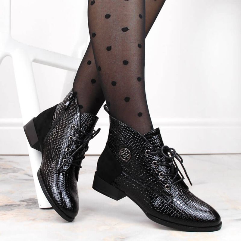 Filippo W PAW478A schwarze Lacklederstiefeletten mit isolierter Krokodilledersohle