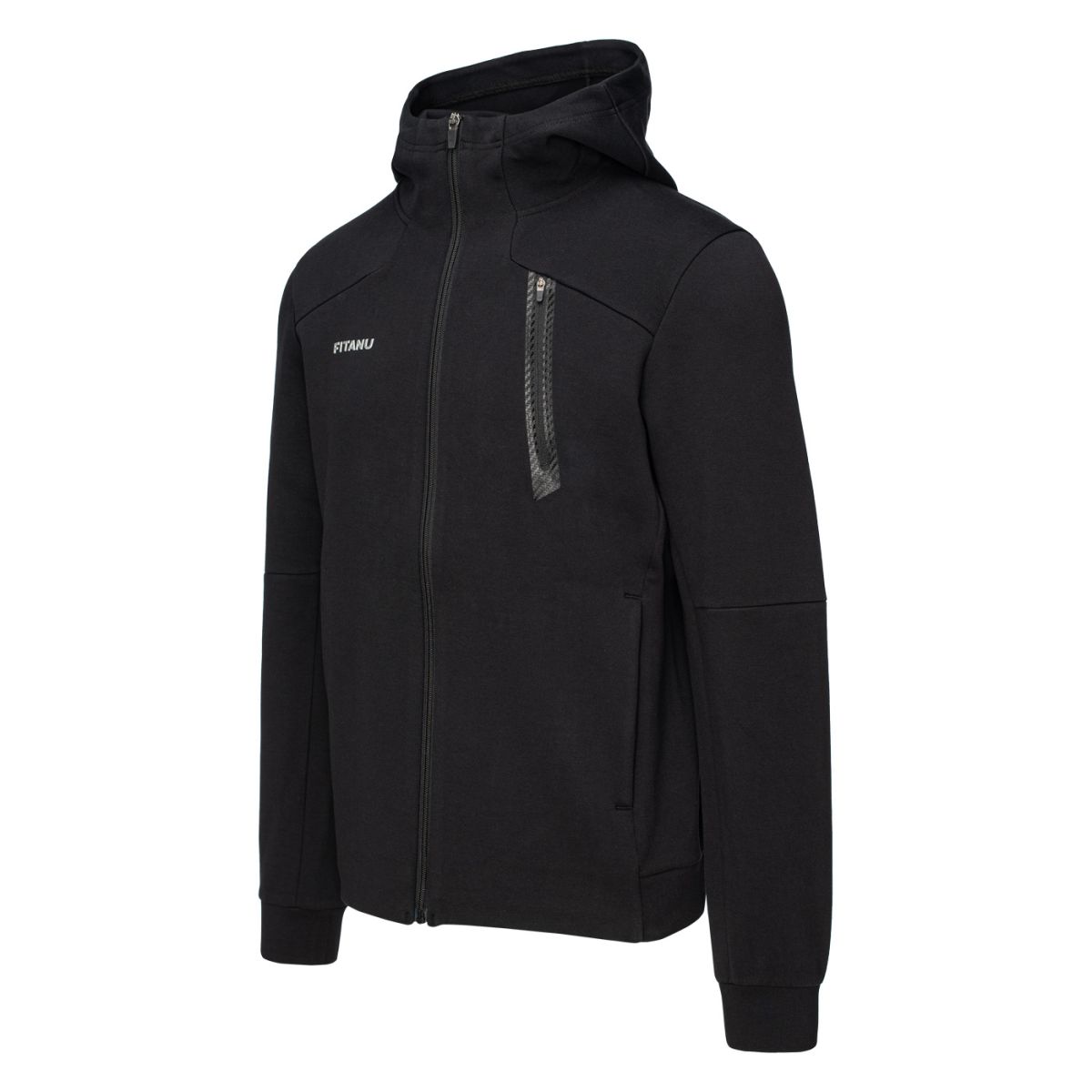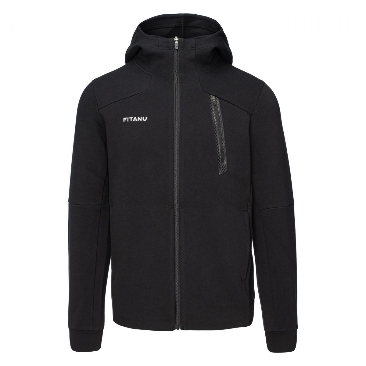 Das schwarze BENKAR Herren-Sweatshirt von Fitanu besticht durch seinen schlichten, sportlichen Schnitt und passt somit perfekt zu mehr als nur einem lässigen Outfit. Ein durchgehender Reißverschluss erleichtert das An- und Ausziehen. Die geräumige, integrierte Kapuze schützt dich vor Windböen. Zwei seitliche Reißverschlusstaschen bieten dir die Möglichkeit, Handy oder Schlüssel sicher zu verstauen. Eine zusätzliche Brusttasche und reflektierende Elemente sind weitere Highlights dieses Produkts.