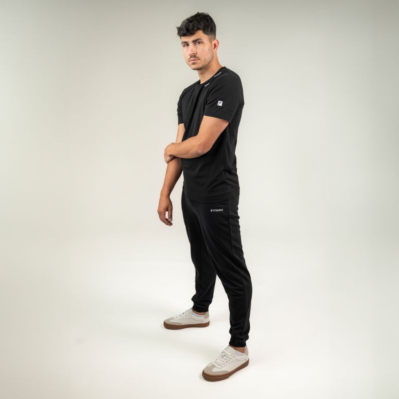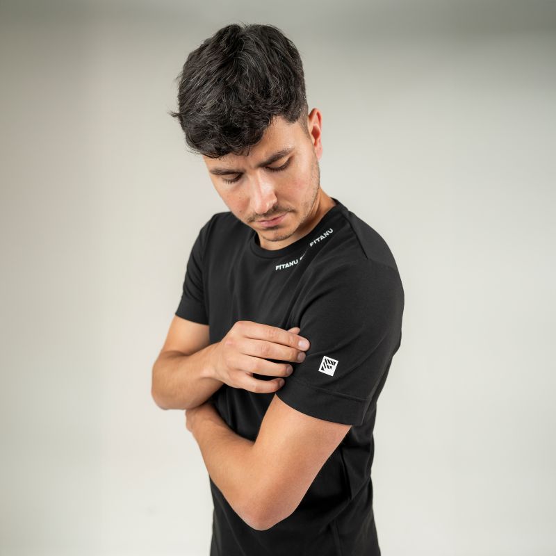 Das schwarze Herren-T-Shirt VINICK von Fitanu hat einen schlichten, klassischen Schnitt, der gut zur männlichen Figur passt.