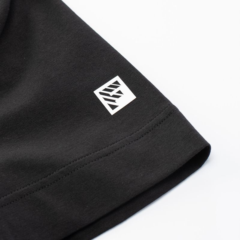 Das dezente Logo der Marke prangt auf einem einfarbigen Untergrund. Das T-Shirt ist aus recycelten Materialien hergestellt.