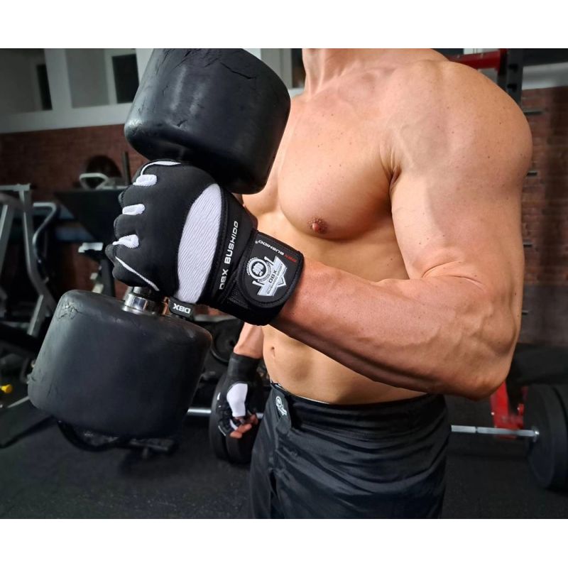 Das GRIP-X©-System garantiert sicheren Halt auch bei nassen Stahlhanteln und der verlängerte Klettverschluss stabilisiert das Handgelenk effektiv. Jedes Detail zählt.