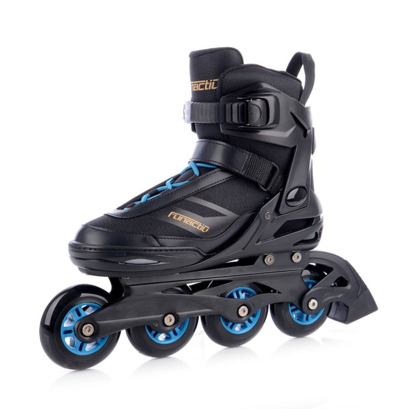 FunActiv Skado 84 Inlineskates: Komfort und Stabilität für Fitness-Skating. Die FunActiv SKADO 84 sind moderne Fitness-Inlineskates für erwachsene Freizeit-Skater, die ein komfortables und stabiles Modell für regelmäßiges Skaten suchen. Sie vereinen eine bequeme Passform, gute Kontrolle und zuverlässige Fahreigenschaften. Die mittelhohe Schale bietet ausreichend Knöchelunterstützung, ohne die Bewegungsfreiheit wesentlich einzuschränken. Der zweiteilige Innenschuh passt sich optimal der Fußform an und kann zum Lüften oder Reinigen leicht herausgenommen werden. Für zusätzlichen Komfort ist der Achillessehnenbereich extra gepolstert, was den Tragekomfort, insbesondere bei längeren Fahrten, erhöht. Hauptmerkmale: Mittelhohe Schale: Bietet stabilen Knöchelhalt bei gleichzeitiger Erhaltung der Bewegungsfreiheit. Zweiteiliger Innenschuh: Liegt eng am Fuß an und kann zum Lüften oder Reinigen herausgenommen werden. Achillessehnenverstärkung: Zusätzliche Polsterung erhöht den Komfort bei längeren Fahrten. Verschlusssystem: Klassische Schnürung, ein Klettverschluss über dem Spann und eine selbstsichernde Schnalle am oberen Ende gewährleisten einen stabilen und präzisen Sitz. 84 mm / 85A Rollen: Bieten eine gute Balance zwischen sanftem, schnellem Fahrgefühl und leichter Manövrierbarkeit. Die FunActiv Skado 84 Inlineskates sind ein komfortables und stabiles Modell für alle, die entspanntes Freizeitskaten und Fitnesstraining auf Inlineskates genießen möchten. Technische Daten – Freizeit-/Fitness-Inlineskates Empfohlene Verwendung: Freizeitskaten, Fitness, für Anfänger und Fortgeschrittene Schale: PE/NYLON, 2-teilig, weiche Konstruktion Innenmaterial: Versteiftes NYLON/NYLEX, anatomisch geformt, verstärkt mit PVC-Elementen, komfortable Polsterung (Bandage), sockenähnliche Polsterung Rahmen: Leichte Aluminiumlegierung (AL), 2-teilig; Befestigungssystem: Zwei Querschrauben unter der Ferse und eine zentrale Schraube unter dem Vorderfuß – Ideal Position Control. Rollentyp: Standard CATCH-Rollen, PU-Guss, geringer Rollwiderstand. Rollendurchmesser: 84 mm. Rollenhärte: 85A. Kugellager: ABEC 7 Carbon. Achse: Außendurchmesser: 6 mm, Länge: 27 mm. Bremse: Ja. Verschlusssystem: Schnürsenkel, 1x Schnalle, 1x Klettverschluss. Maximale Belastung: 100 kg.