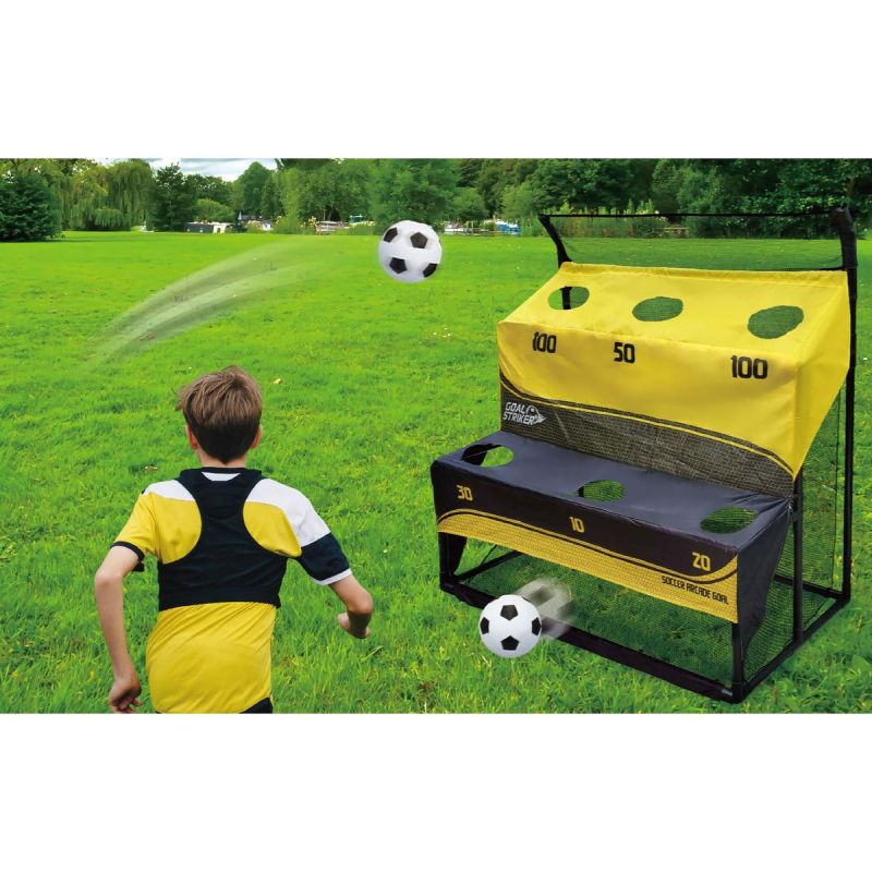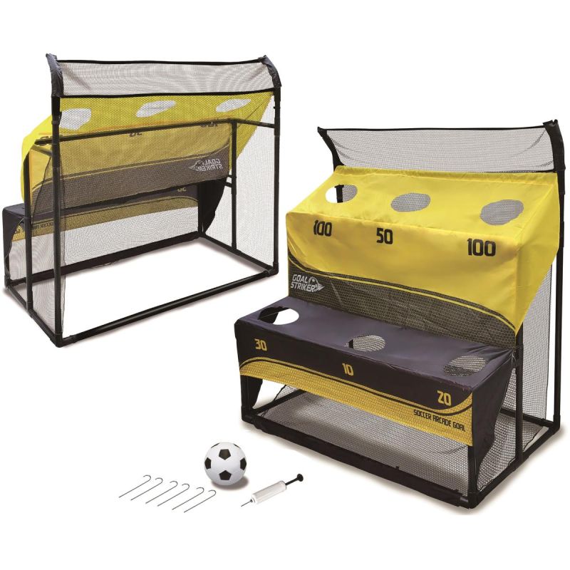 - Das Set beinhaltet: faltbares Tor, Schießscheiben, Netz, Heringe, Ball, Pumpe