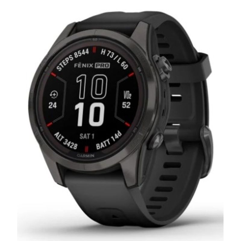 Garmin Fenix 7S Pro 42 mm Saphirgrau Titan DLC Uhr mit schwarzem Armband
