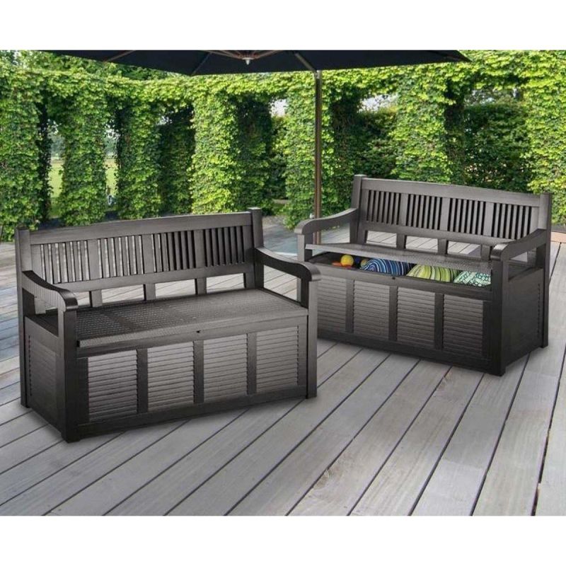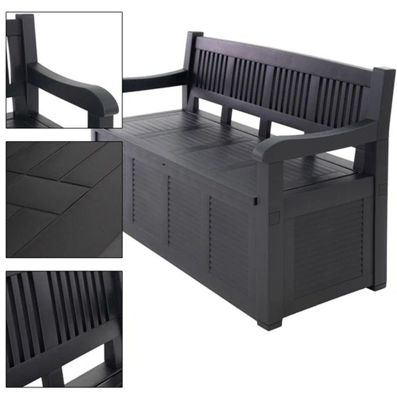 Eine Gartenbank mit Aufbewahrungsbox ist ein funktionales Gartenmöbelstück, das bequemes Sitzen mit praktischem Stauraum verbindet.