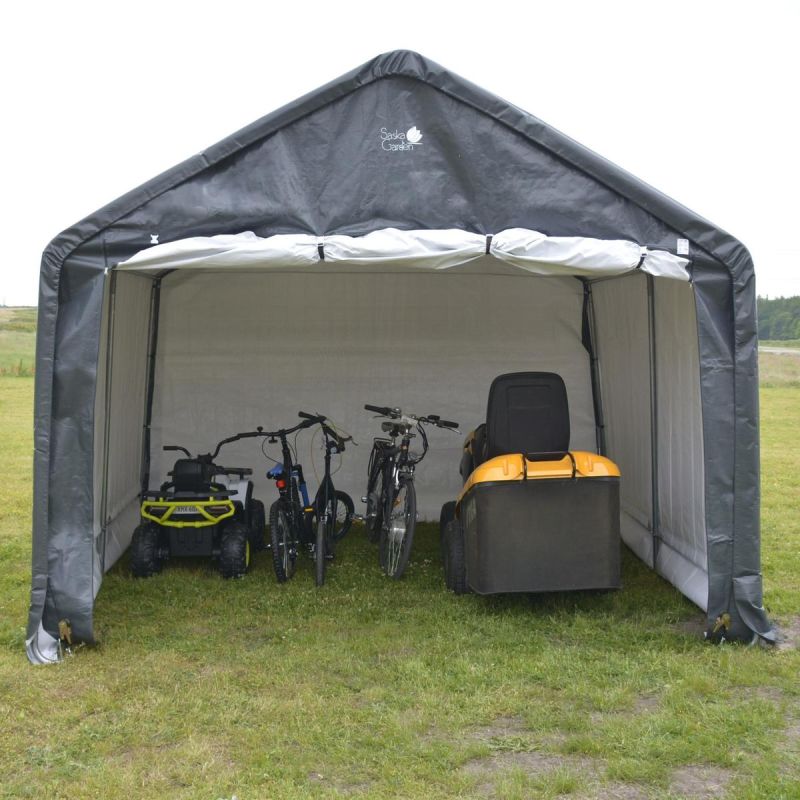 Ihre Gartengeräte, Möbel oder Ihr Motor verdienen den besten Schutz – kaufen Sie den GARTENGARAGENPAVILLON 3,50x3,50x2,60M GRAU SASKA GARDEN, der weder Regen noch Sonne trotzt!