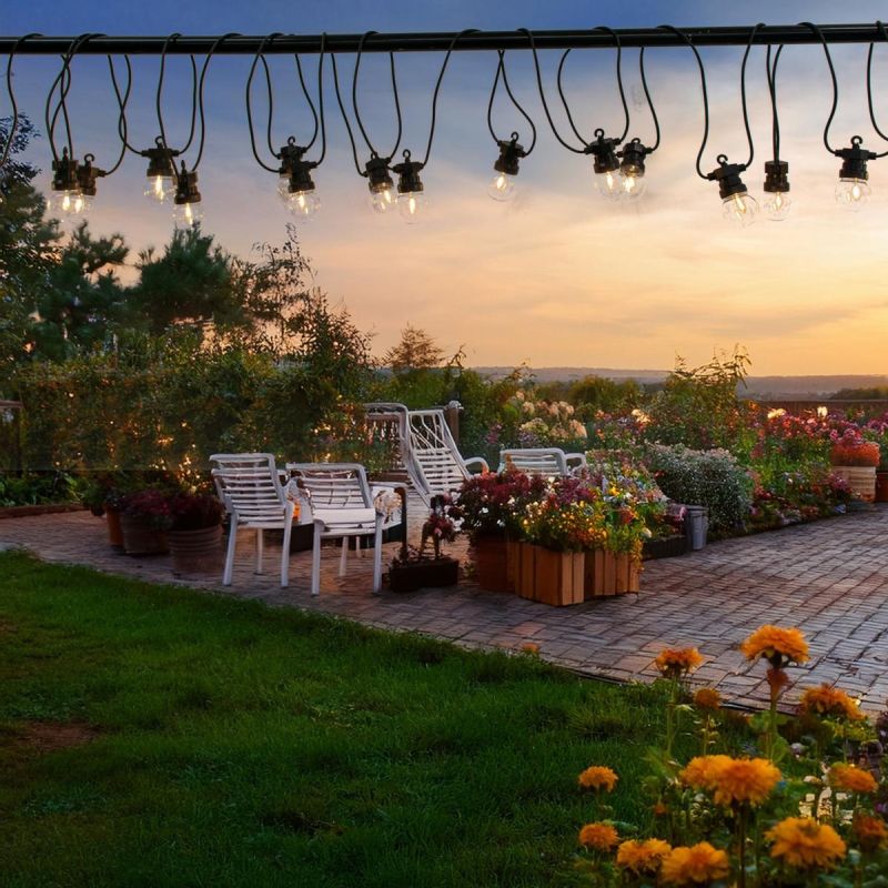Die Girlande ist insgesamt ca. 12,5 Meter lang und eignet sich daher perfekt für vielfältige Dekorationsmöglichkeiten – ob auf einer Terrasse, um einen Pavillon, an einer Pergola oder zwischen Bäumen. Der gleichmäßige Abstand von 50 cm zwischen den Glühbirnen sorgt für eine gleichmäßige Beleuchtung und verleiht dem Raum ein harmonisches und elegantes Ambiente.