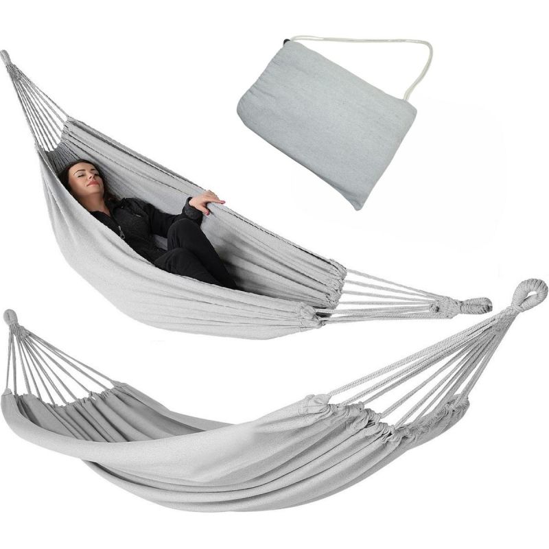 Träumen Sie von einem komfortablen Ort zum Entspannen nach einem langen Tag? Bietet Ihnen die 1-Personen-Gartenhängematte 200 x 100 cm mit grauem Bezug das perfekte Entspannungserlebnis im Freien?