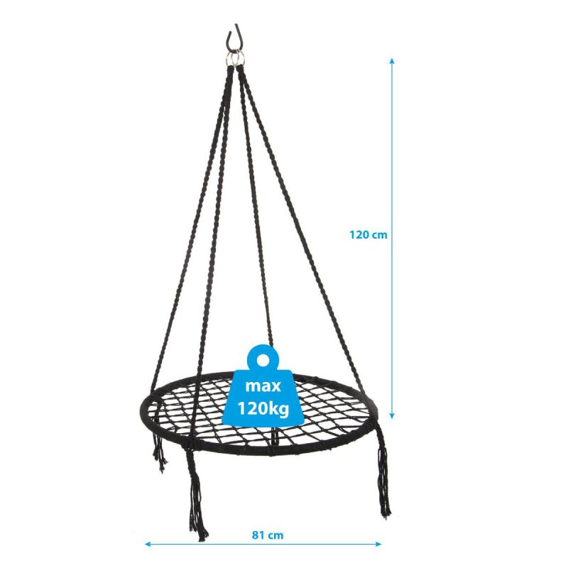 - Materialien: Hängematte – Baumwollmischgewebe, Reifen – 100 % Stahl
