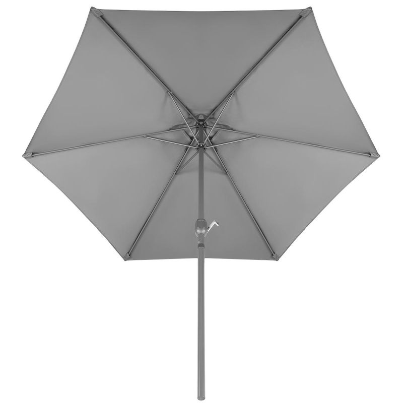 - Farbe: Stühle – grau, Gestelle – grau, Sonnenschirm – grau