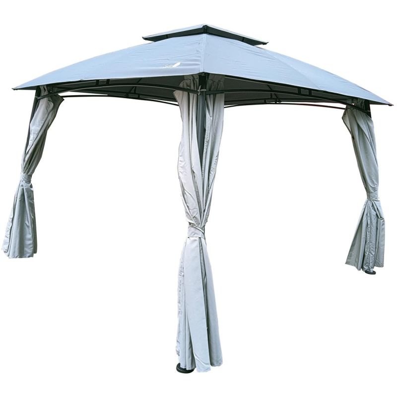 Suchen Sie nicht weiter! Der 3x3x2,6M große Gartenpavillon mit grauen Vorhängen macht jede Feier zum Erfolg.