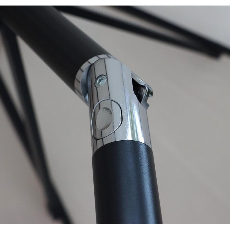 Neben der Kurbel zum Öffnen des Schirmdachs verfügt der Sonnenschirm auch über ein Neigungsverstellsystem. Dadurch lässt sich der Schattenbereich im Laufe des Tages anpassen und auch an heißen Tagen eine angenehme Temperatur gewährleisten.
