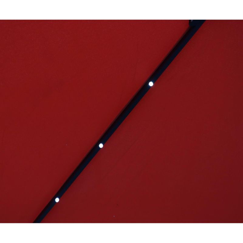 - Anzahl der LEDs: 32 (4 an jedem Arm), gespeist von einem Solarpanel (im Lieferumfang des Sonnenschirms enthalten)