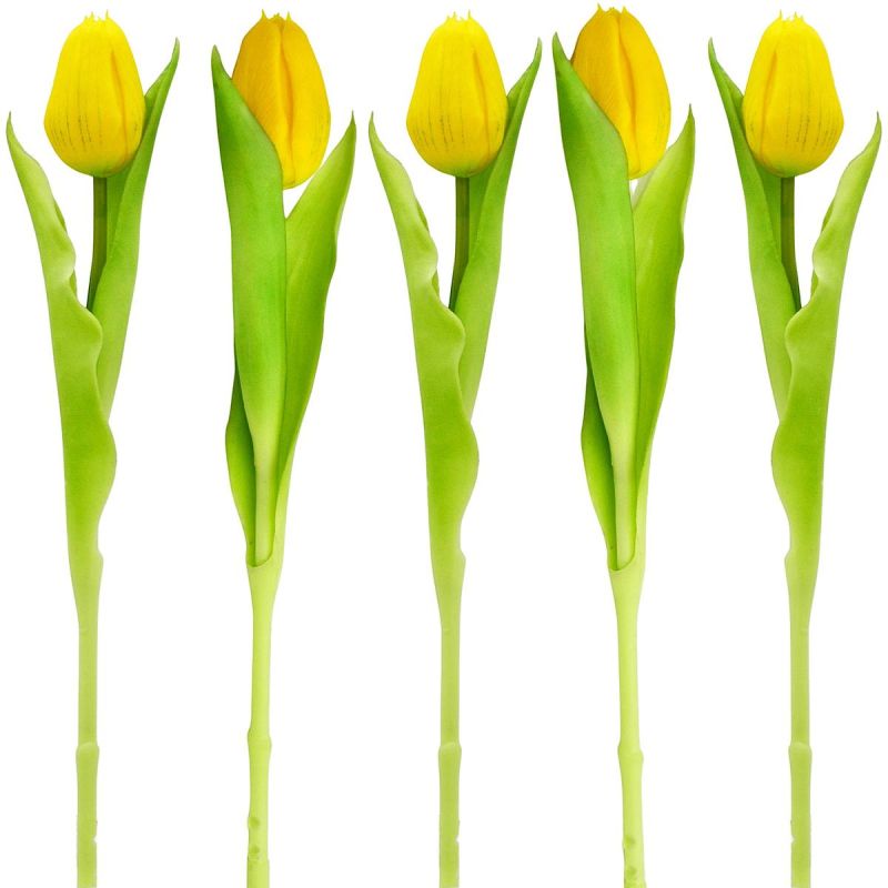Sie möchten Ihrem Zuhause Frühlingsfrische und Energie verleihen, ohne sich um die Pflanzenpflege kümmern zu müssen? Die 31 cm große, naturgetreue gelbe Tulpe ist eine realistische Dekoration, die täuschend echt aussieht und Ihren Raum das ganze Jahr über verschönert.