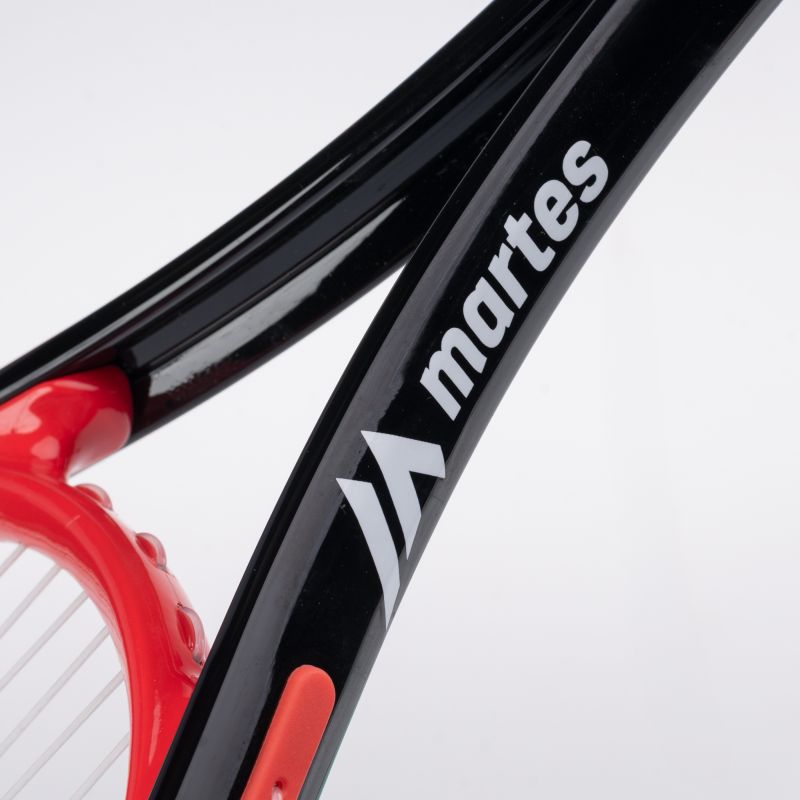 Tennisschlägergröße: 27 Zoll, Gewicht: 290 g +/- 10 g, Materialzusammensetzung: Rahmen: Aluminium, Griff: PU-Schaum, Kopfgröße: 109 Quadratzoll, Saitenmuster: 19 x 16, Bespannungshärte: 50–55 lbs