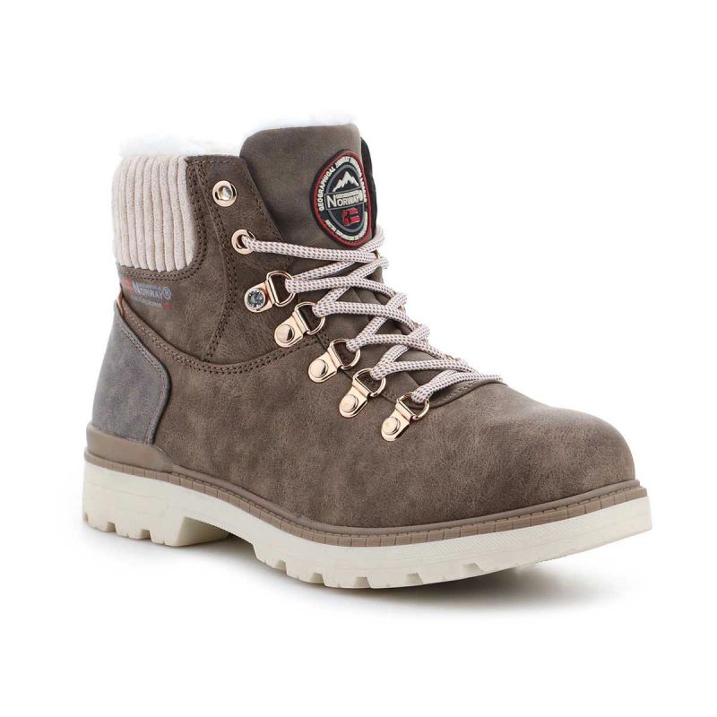 Diese Damenstiefel von Geographical Norway, die bis knapp über den Knöchel reichen, sind mit weichem Kunstwollfutter gefüttert und somit perfekt für Winter- und Herbsttage. Ein weicher Schaft schützt vor Abrieb und garantiert Tragekomfort. Das Obermaterial besteht aus Öko-Leder und ist geschnürt. Die Gummisohle sorgt für zusätzlichen Halt. Eine wunderschöne braune Farbe!