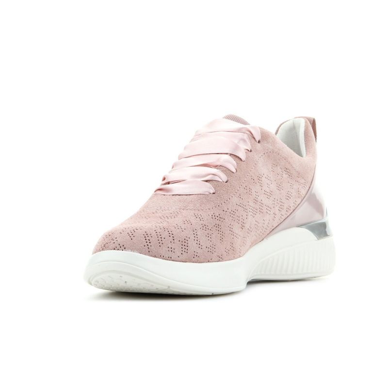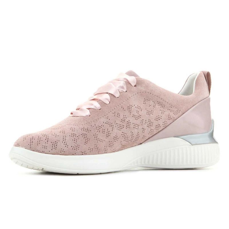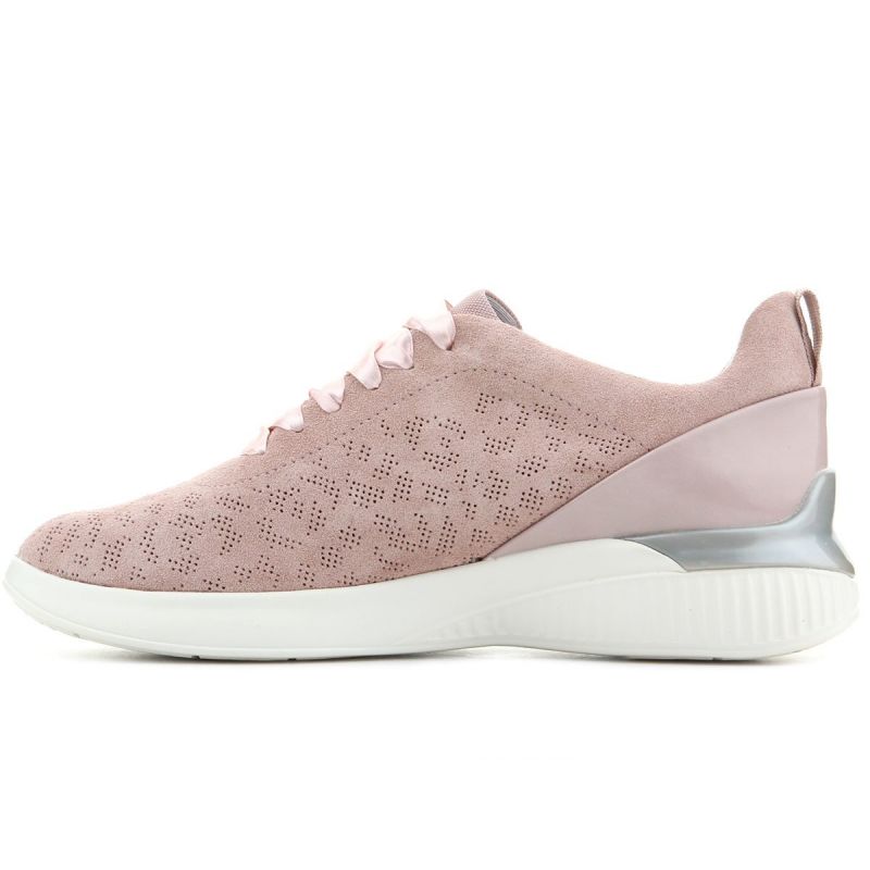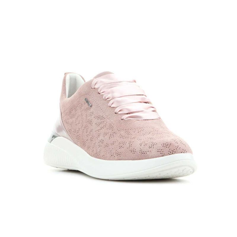 Damenschuhe für die Frühlings- und Sommersaison. Das Obermaterial aus Wildleder verfügt über eine synthetische Fersenkappe, die diesem Modell einen einzigartigen letzten Schliff verleiht. Eine zusätzliche Fersenlasche. Strapazierfähige und griffige Sohle. Geox-Logo an der Seite des Obermaterials. Geox Respira – eine perforierte Sohle, die Schweiß aufnimmt und ableitet, ohne dass Wasser in den Schuh eindringt. Der Fuß bleibt trocken und hat die richtige Temperatur.