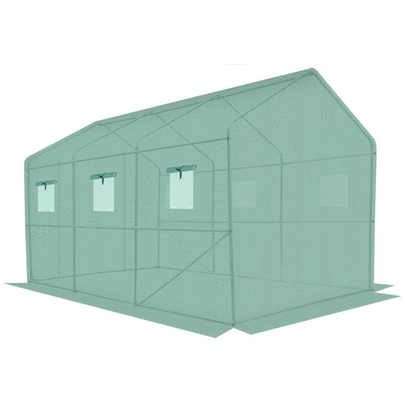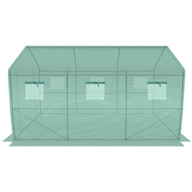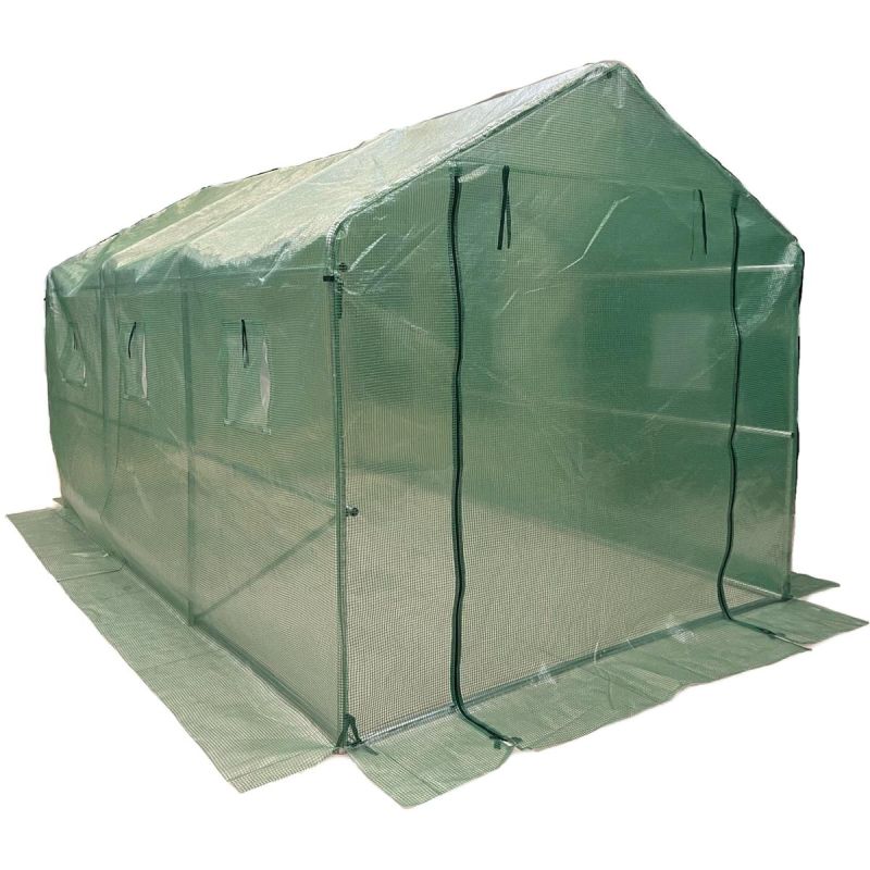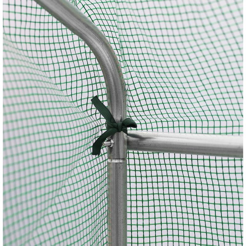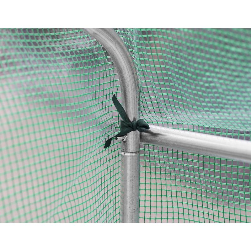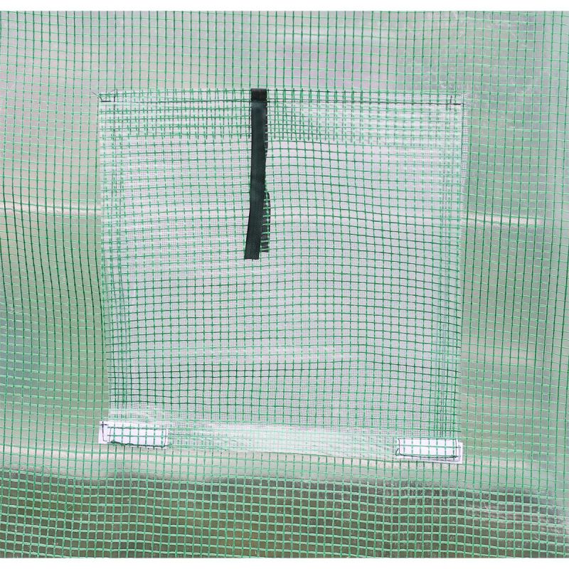 Das Gewächshaus ist durchdacht gestaltet. Es verfügt über sechs Fenster mit Moskitonetzen, die jederzeit von außen geöffnet oder geschlossen werden können, sodass Sie die Lichtmenge, die in den Tunnel gelangt, regulieren können, sowie über eine komfortable, 120 cm breite Tür mit Reißverschluss.