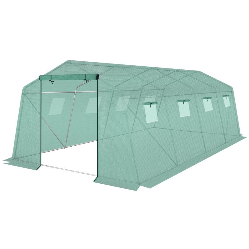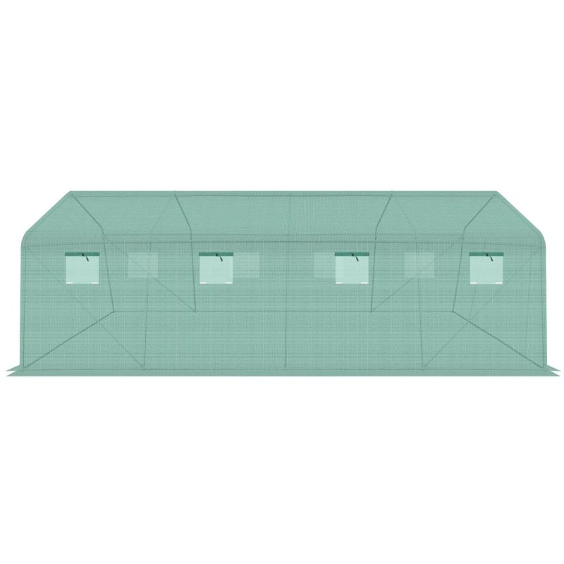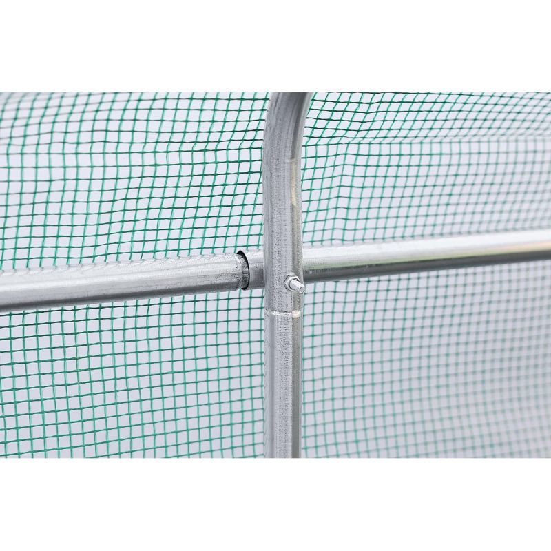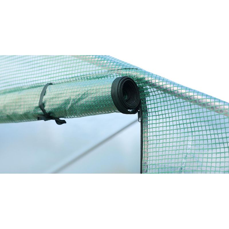 Das Gewächshaus ist durchdacht gestaltet. Es verfügt über acht Fenster mit Moskitonetzen, die jederzeit von außen geöffnet oder geschlossen werden können, sodass Sie den Lichteinfall in den Tunnel regulieren können, sowie über eine praktische, 120 cm breite Tür mit Reißverschluss.