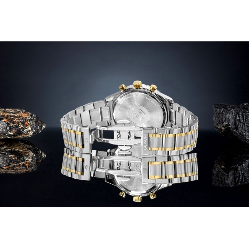 Die Giewont GW6310-B6 Herrenuhr ist ein Modell für Männer, die Wert auf unverwechselbaren Charakter, robuste Verarbeitung und Funktionalität im Alltag legen. Ihr Zifferblatt mit der präzisen Anordnung der Chronographen-Hilfszifferblätter besticht durch ein dynamisches und gut ablesbares Design, das trotz des klassischen Designs den modernen und leicht sportlichen Charakter der Uhr unterstreicht. Jedes Element ist auf intuitive Ablesbarkeit und ästhetische Harmonie ausgelegt und vermittelt so den Eindruck eines perfekt gestalteten Zeitmessers.
