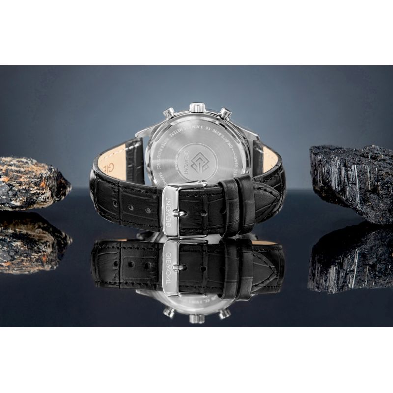 Die Giewont GW6310-A3 Herrenuhr ist ein Modell für Männer, die Wert auf unverwechselbaren Charakter, robuste Verarbeitung und Funktionalität im Alltag legen. Ihr Zifferblatt mit der präzisen Anordnung der Chronographen-Hilfszifferblätter besticht durch ein dynamisches und gut ablesbares Design, das trotz des klassischen Designs den modernen und leicht sportlichen Charakter der Uhr unterstreicht. Jedes Element ist auf intuitive Ablesbarkeit und ästhetische Harmonie ausgelegt und vermittelt so den Eindruck eines perfekt gestalteten Zeitmessers.